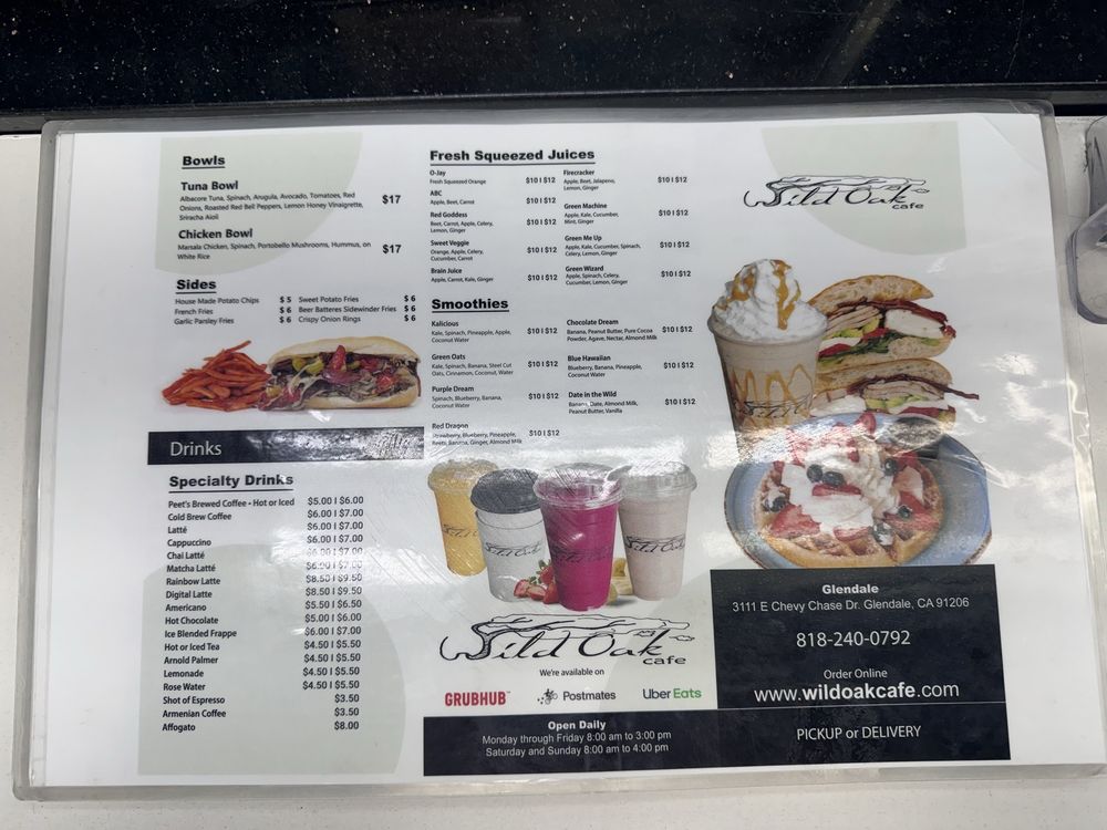 Wild Oak Cafe, located in Glendale, California, offers a delightful selection of breakfast, brunch, and sandwich options with a focus on vegan and vegetarian choices. The cafe provides various amenities, such as delivery, takeout, wheelchair accessibility, and outdoor seating. Customers rave about the great service, cozy atmosphere, and delicious food options. The menu features items like the Egg White Breakfast Burrito, Rainbow Latte, loaded French toast, and specialty coffees. Despite limited parking, street parking is available nearby. The cafe's aesthetic and ambiance, surrounded by a beautiful forest backdrop, provide a unique dining experience. Overall, Wild Oak Cafe is praised for its tasty meals, friendly staff, and relaxing environment, making it a must-visit spot for a satisfying and enjoyable dining experience.